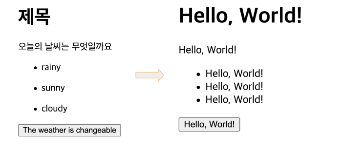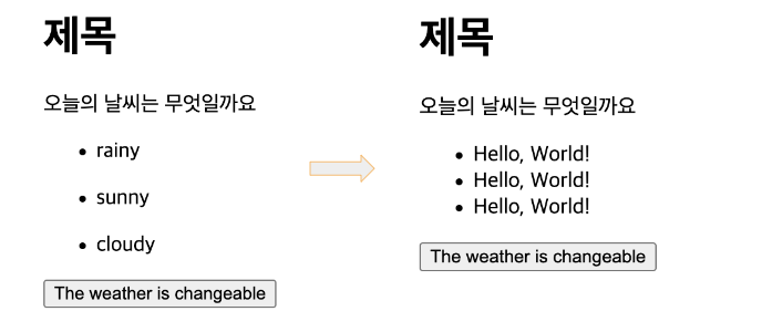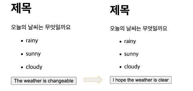 .getElementById() 함수를 사용해서 기존 button에 담겨있던 문구인 'The weather is changeable'을 'I hope the weather is clear'으로 변경했다.